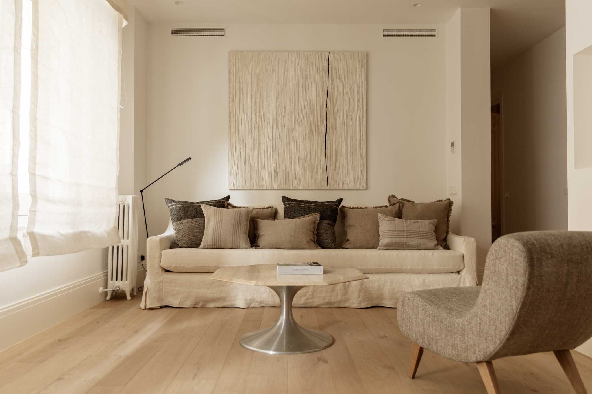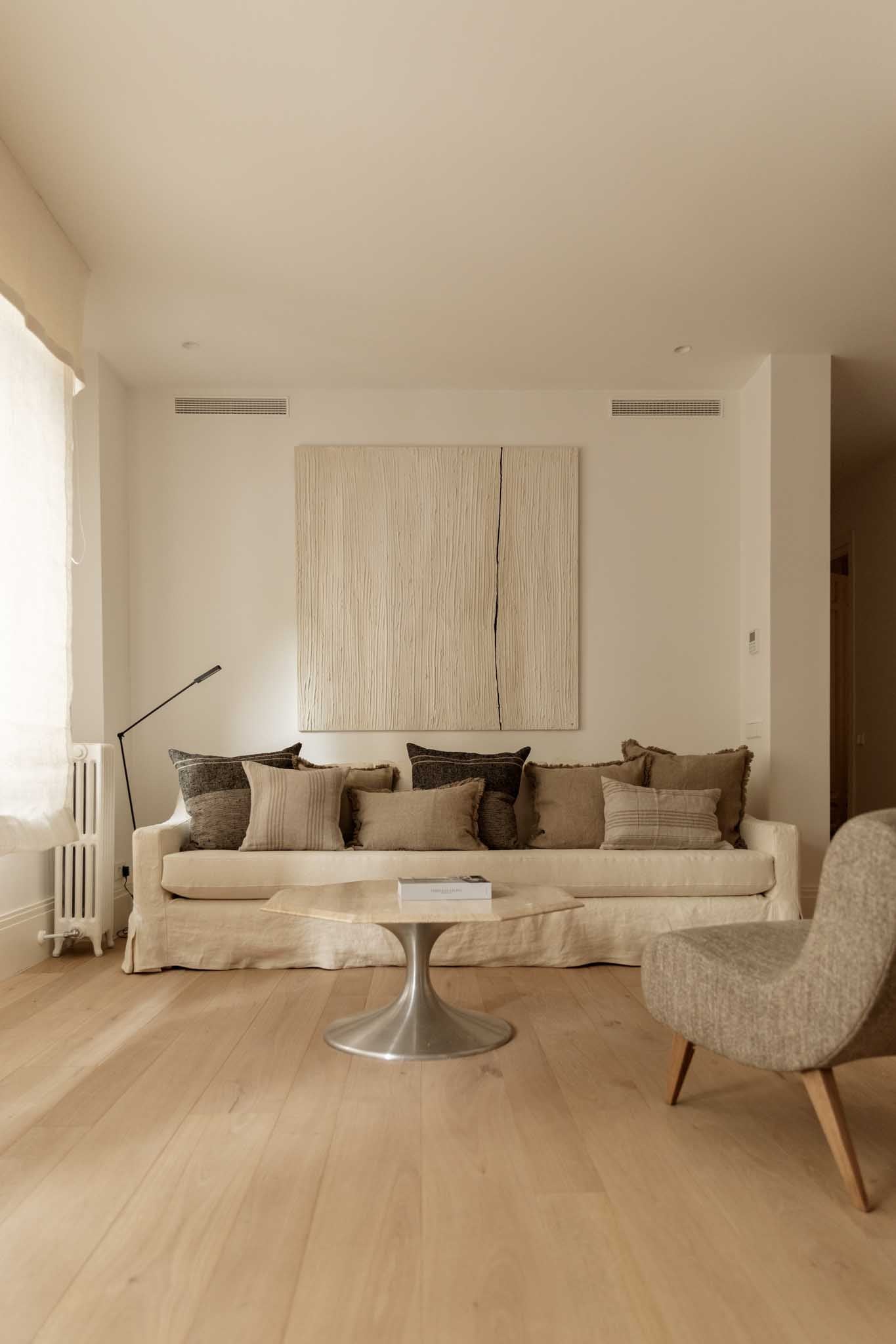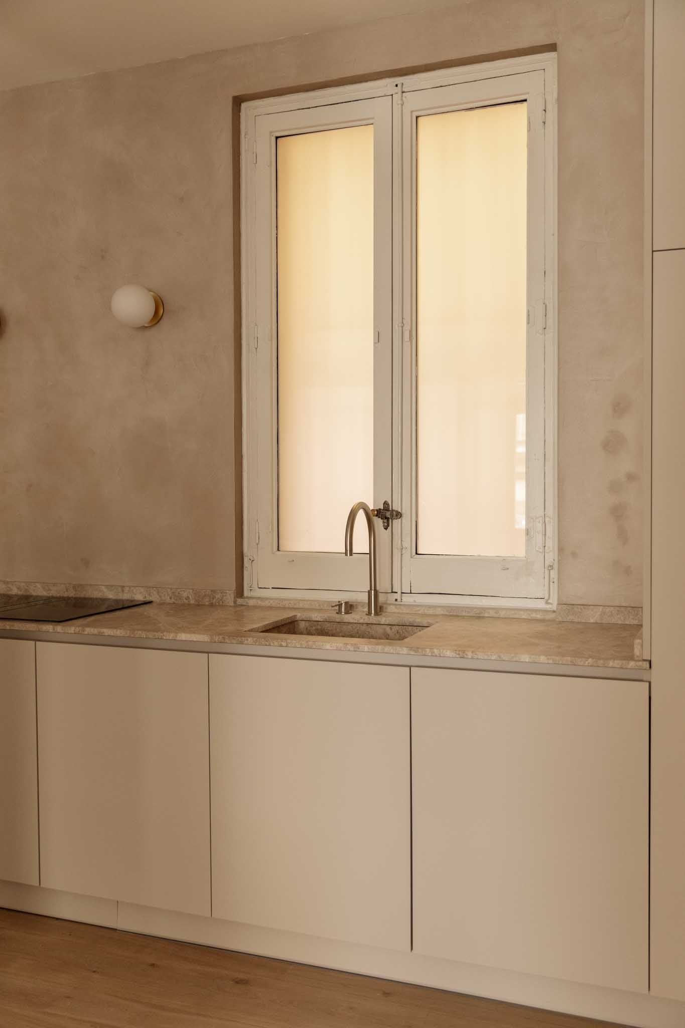 EL RESULTADO ES UN EQUILIBRIO ENTRE MEMORIA Y CONTEMPORANEIDAD. EL MÁRMOL SE CONVIERTE EN HILO CONDUCTOR DEL ESPACIO APORTANDO COHESIÓN, NOBLEZA Y UNA ESTÉTICA ATEMPORAL. TEXTURAS SUAVES Y TONOS NEUTROS QUE DEFINEN EL CARÁCTER SOBRIO Y LUMINOSO DE LA VIVIENDA.