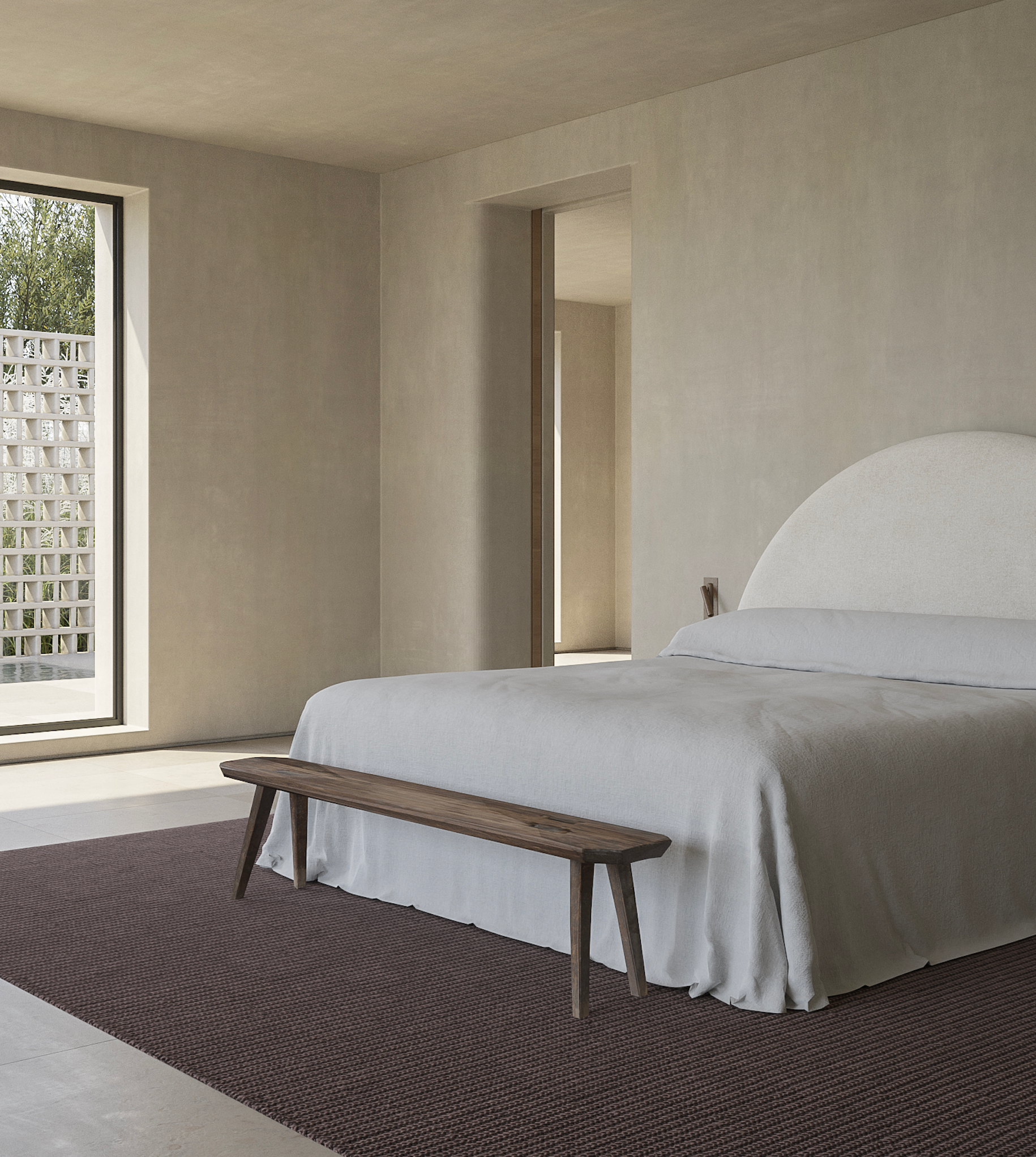 LOS MATERIALES, SOBRIOS Y NEUTROS, DIALOGAN CON LA LUZ MEDITERRÁNEA, REVELANDO SU PROFUNDIDAD. EL ESPACIO SE HABITA DESDE EL SILENCIO Y LA SENCILLEZ, EN UN EQUILIBRIO ENTRE LO MATERIAL Y LO SENSORIAL QUE INVITA A LA QUIETUD Y A LA CONTEMPLACIÓN.