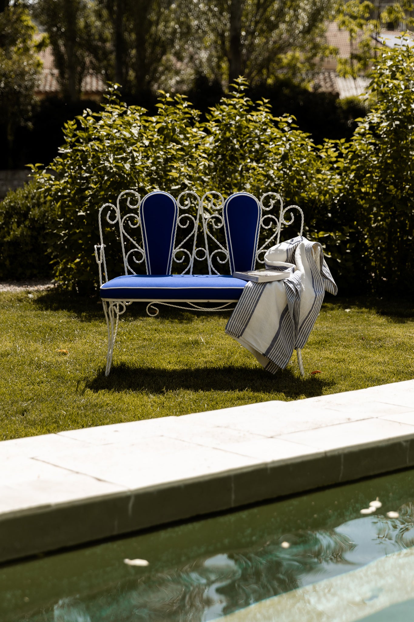 BANCO DE JARDÍN TAPIZADO AZUL