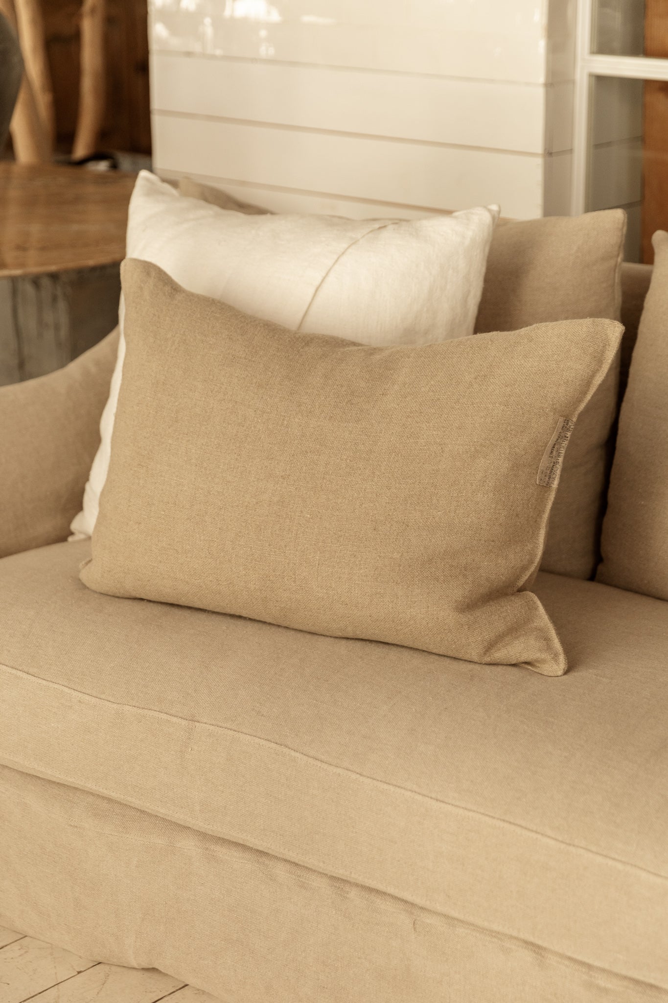 FUNDA DE COJÍN 100% LINO RÚSTICO NATURAL ACABADO PESTAÑA
