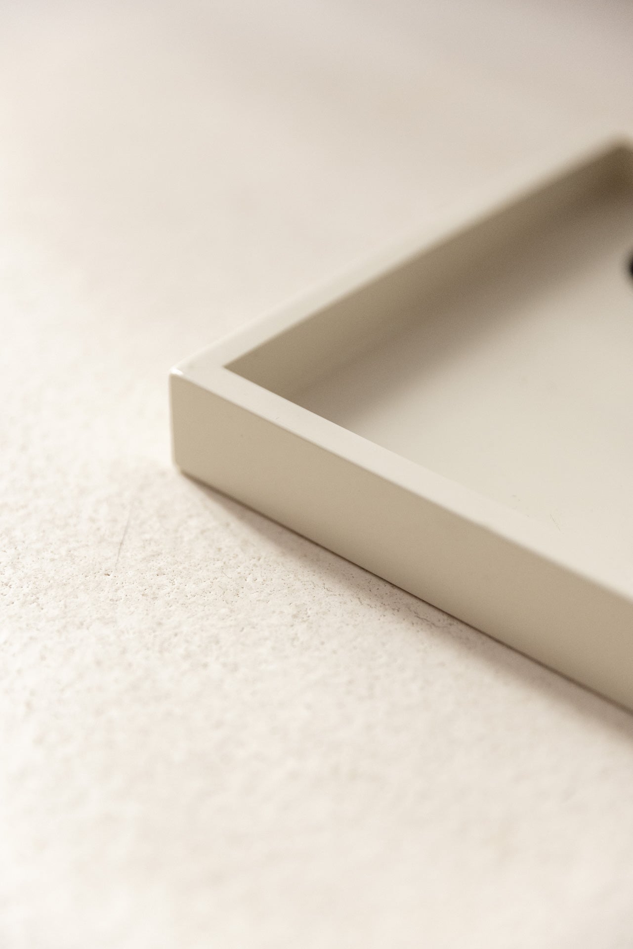 Bandeja de la colección Mestizo, elaborada en madera lacada en color blanco. Su acabado liso y uniforme aporta luminosidad y una estética contemporánea, manteniendo al mismo tiempo la sobriedad y funcionalidad de las formas tradicionales.