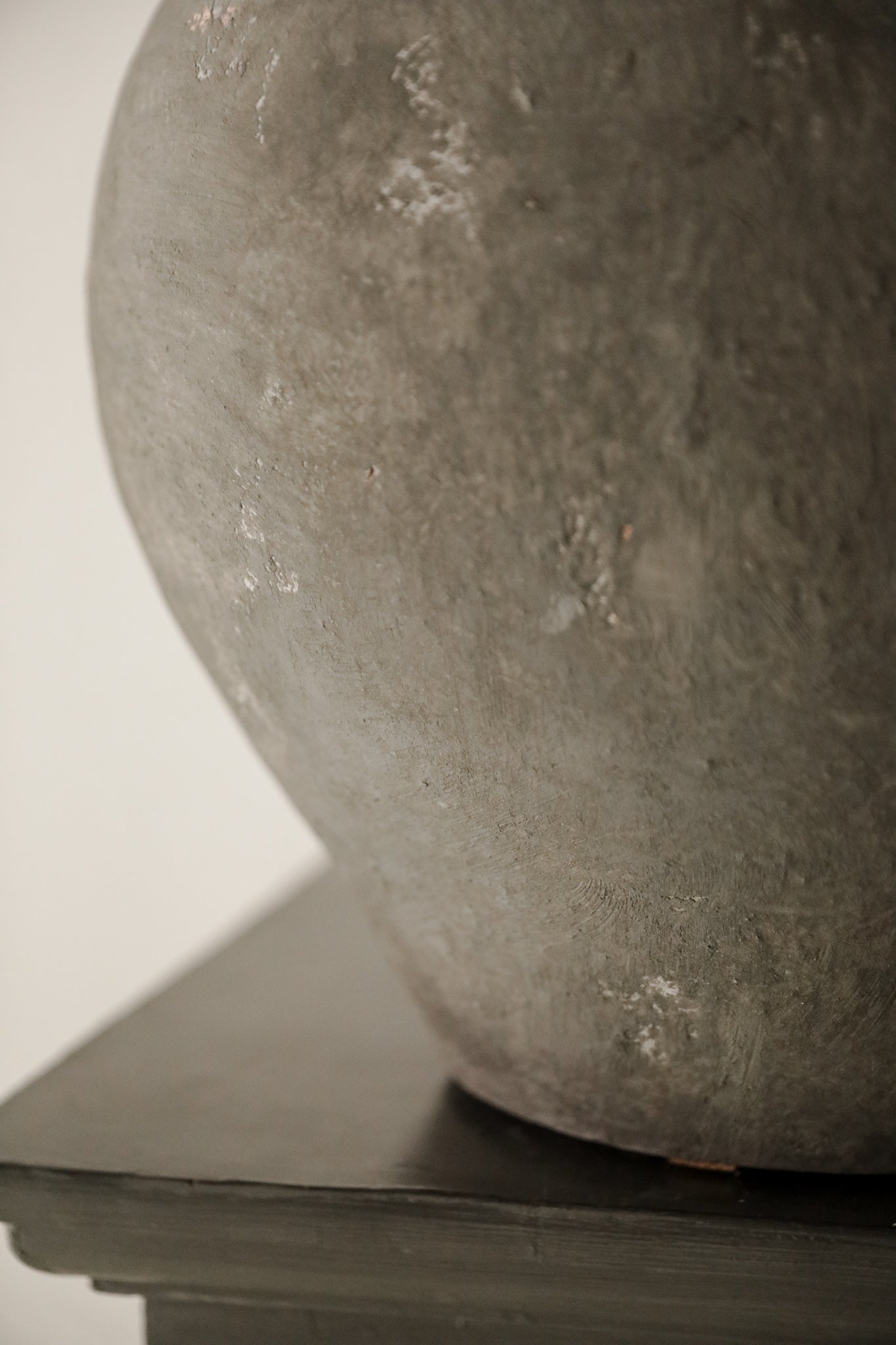 Base de lámpara redonda elaborada en cerámica artesanal de color gris.