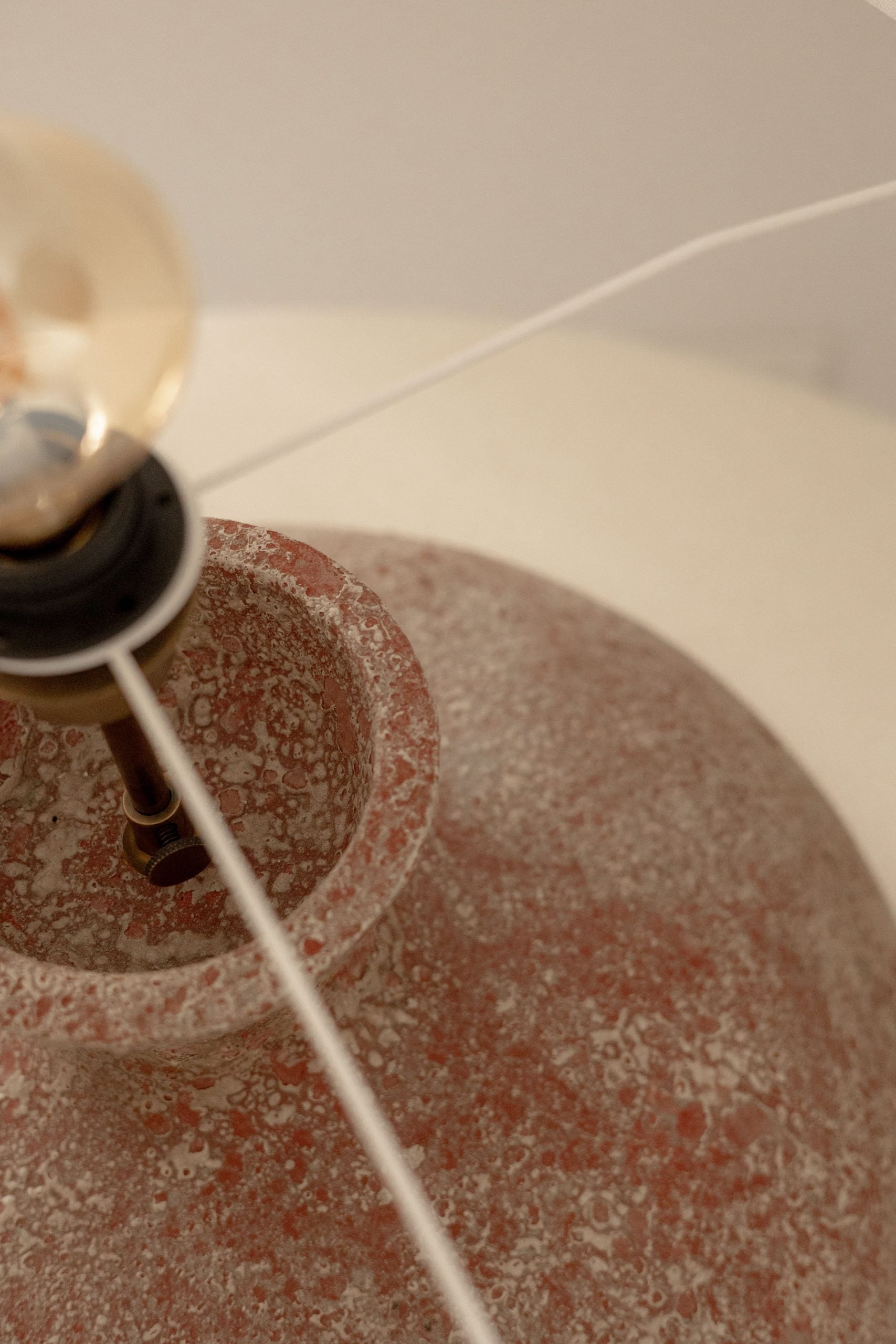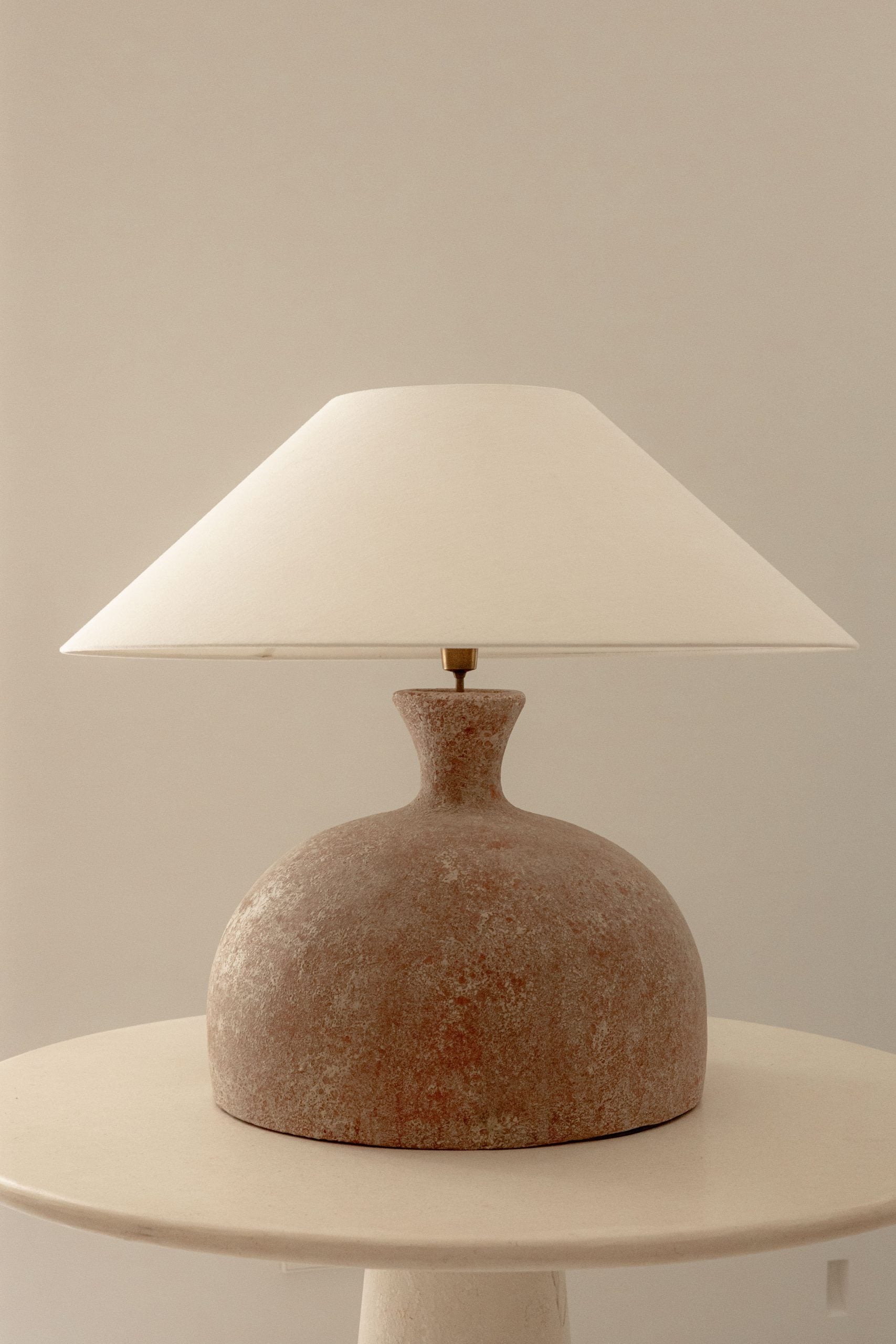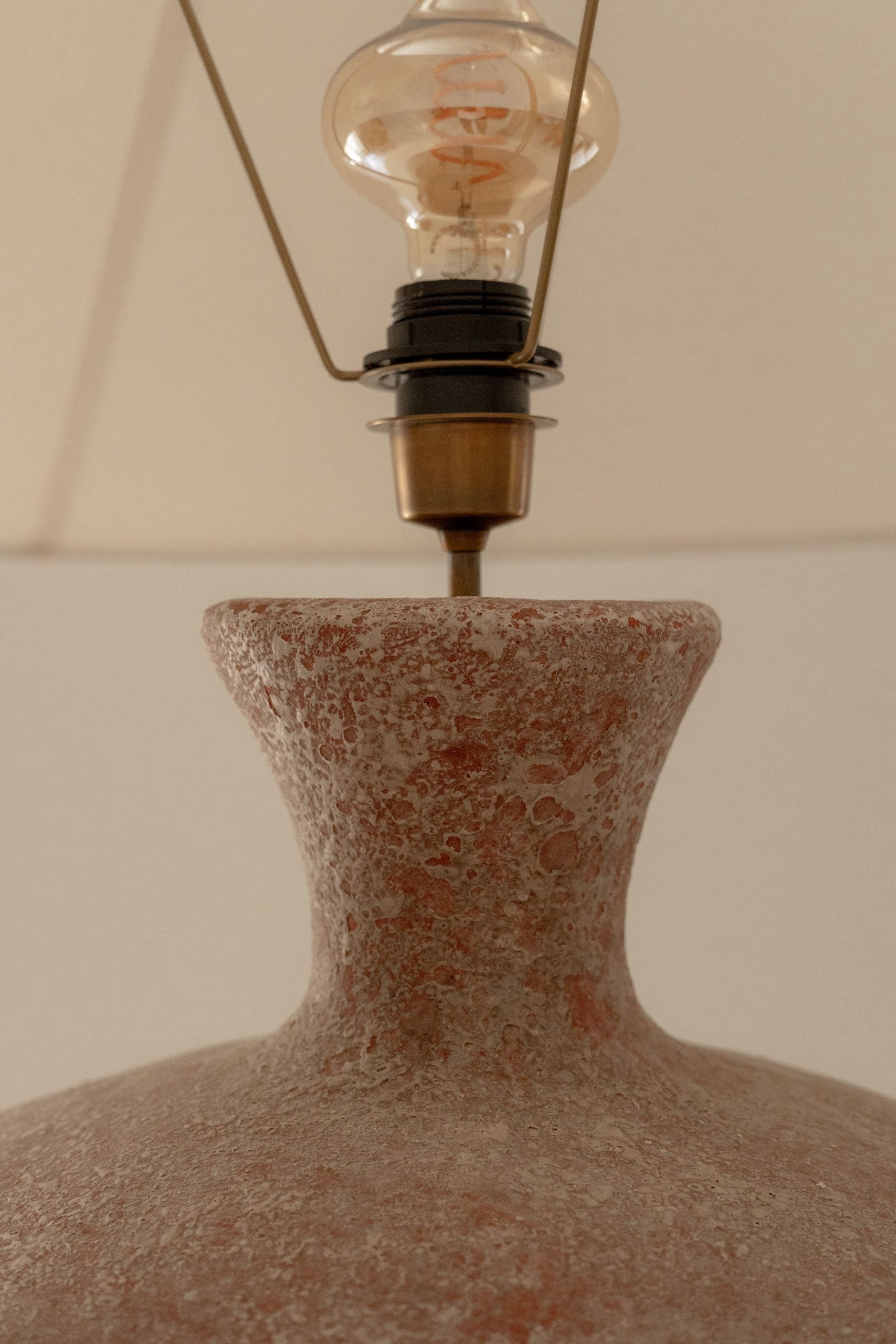 Base de lámpara de cerámica de forma orgánica en tonos terracota y beige.