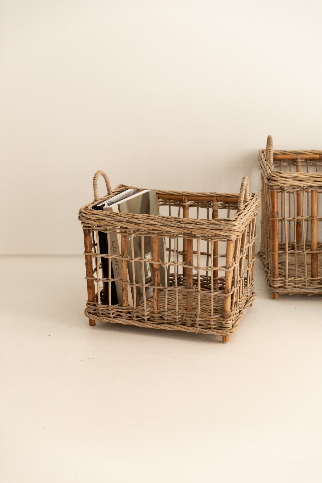 El ratán, valorado por su ligereza y durabilidad, convierte esta pieza en un objeto tanto funcional como decorativo, ideal para almacenamiento, organización o como complemento estético en interiores.