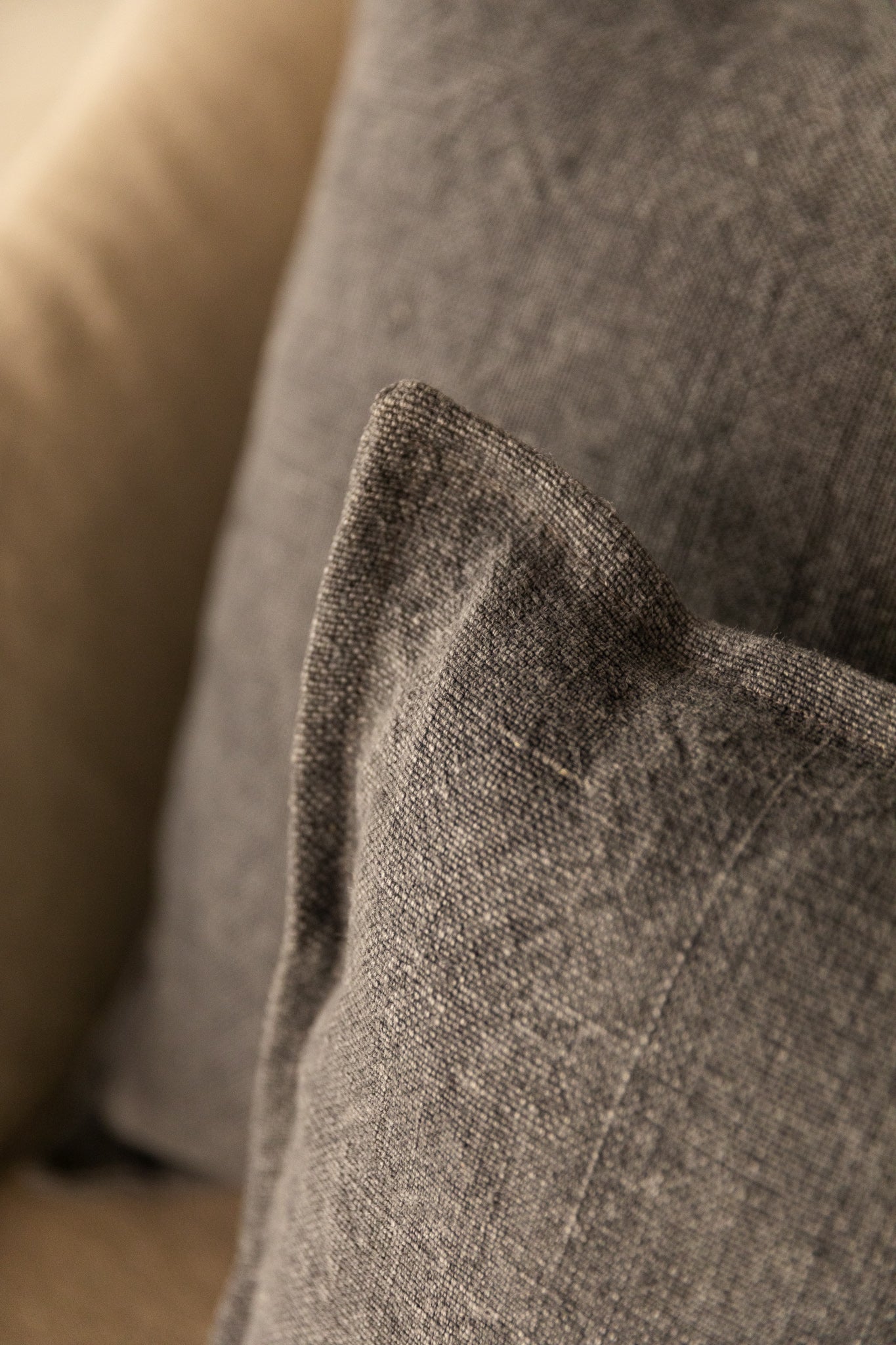 Confeccionado en lino lavado, este cojín combina suavidad, resistencia y un acabado natural con un ligero efecto desgastado que aporta carácter y estilo.