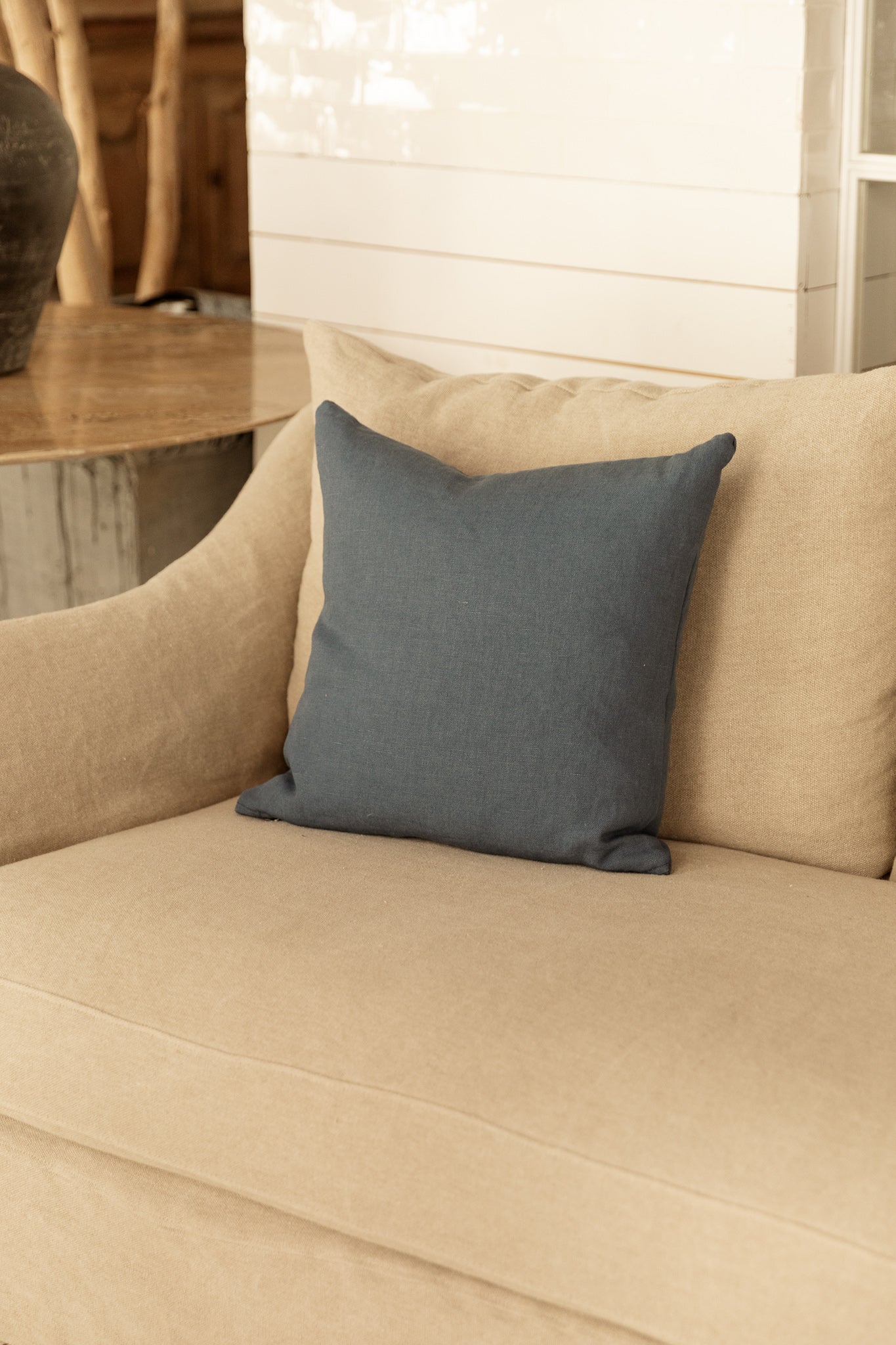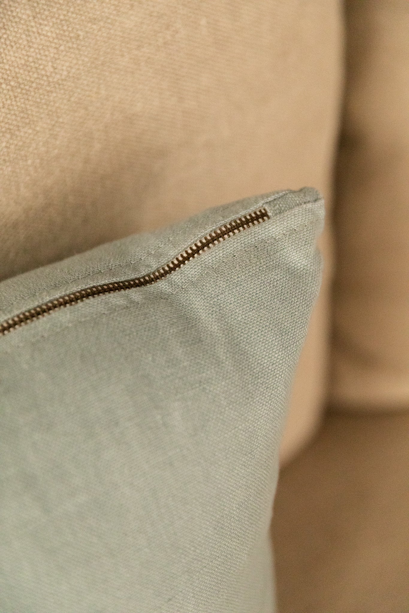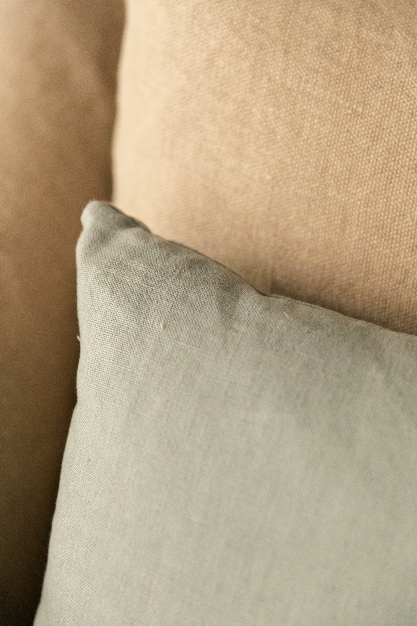 Confeccionado en 100% lino lavado, que combina suavidad, resistencia y un tacto natural. Su relleno de pluma natural ofrece confort y volumen, mientras que la funda interior está forrada en poliéster impermeable, antibacterias y antihongos, protegiendo el cojín y alargando su vida útil.