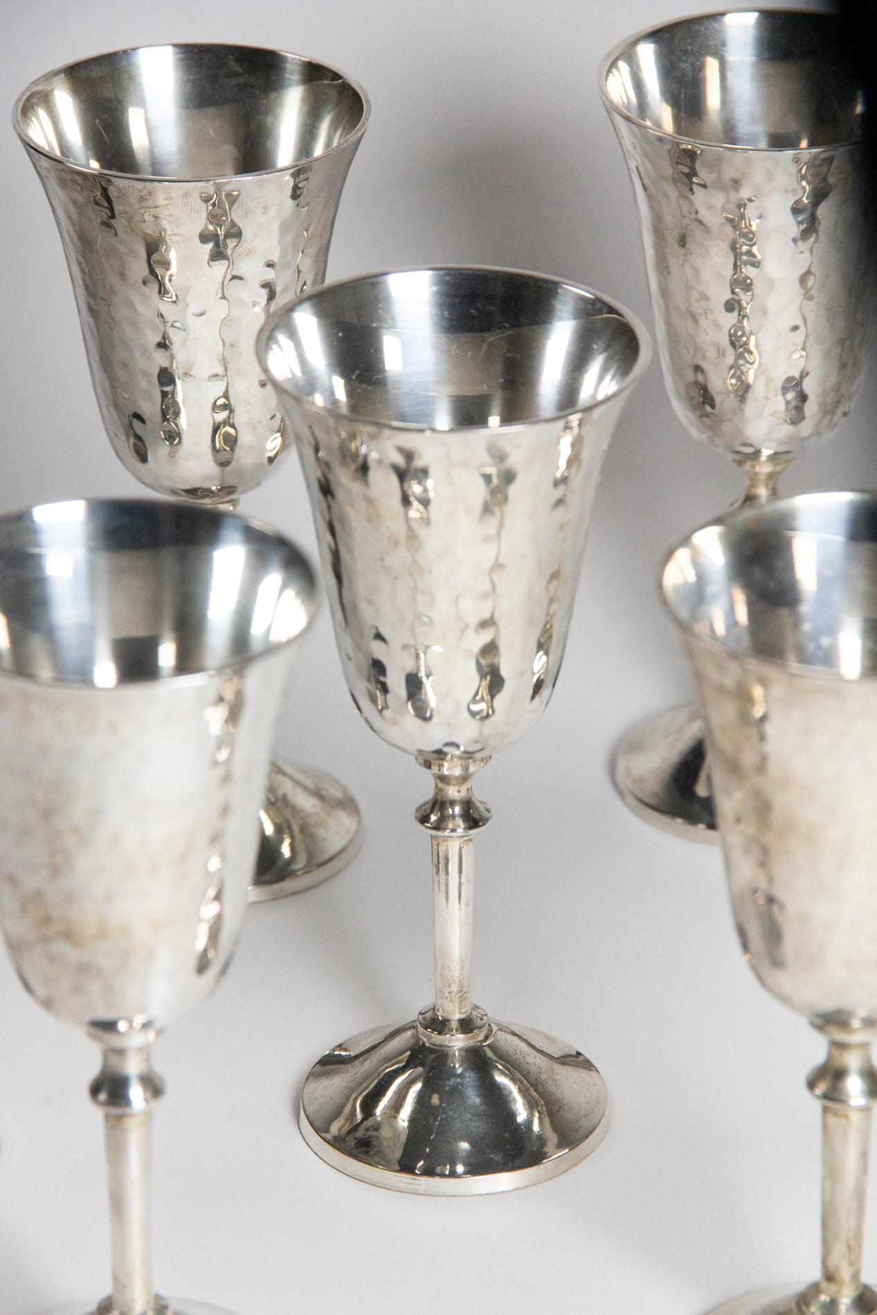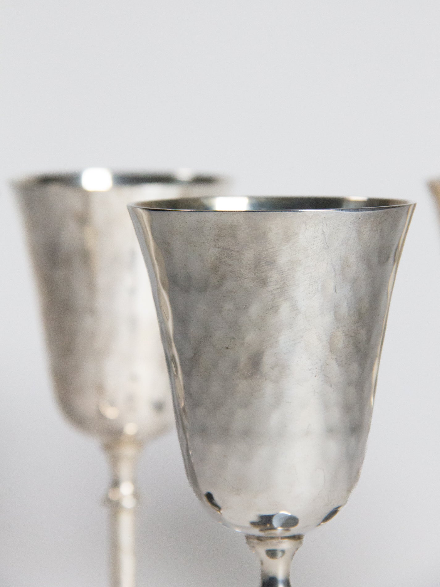 Copa antigua elaborada en metal plateado repujado. Cada pieza ha sido trabajada de forma artesanal mediante técnicas tradicionales que aportan relieve y textura al metal, reflejando la destreza y precisión del oficio.