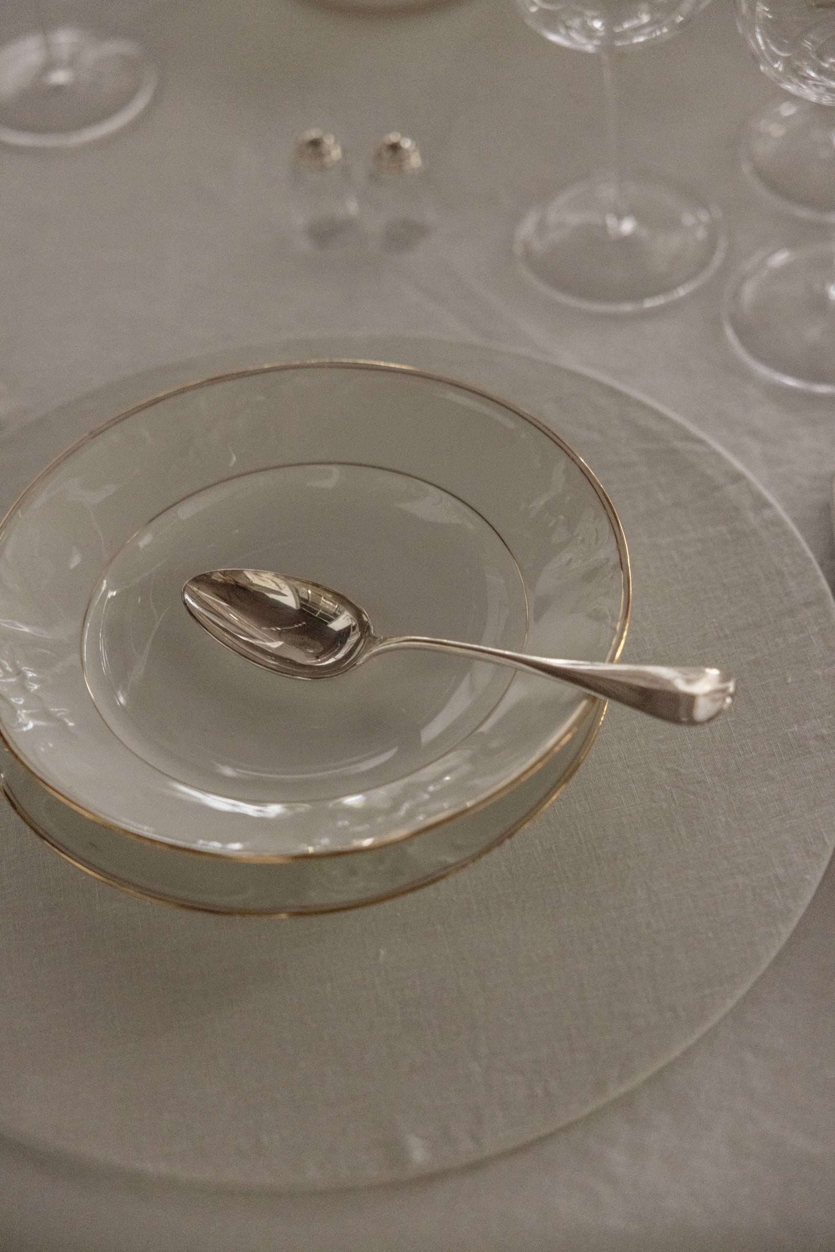 El metal plateado ofrece durabilidad y un brillo atenuado que gana profundidad con el tiempo. Su acabado y peso transmiten la calidad de los objetos pensados para perdurar, manteniendo su funcionalidad y elegancia en la mesa.