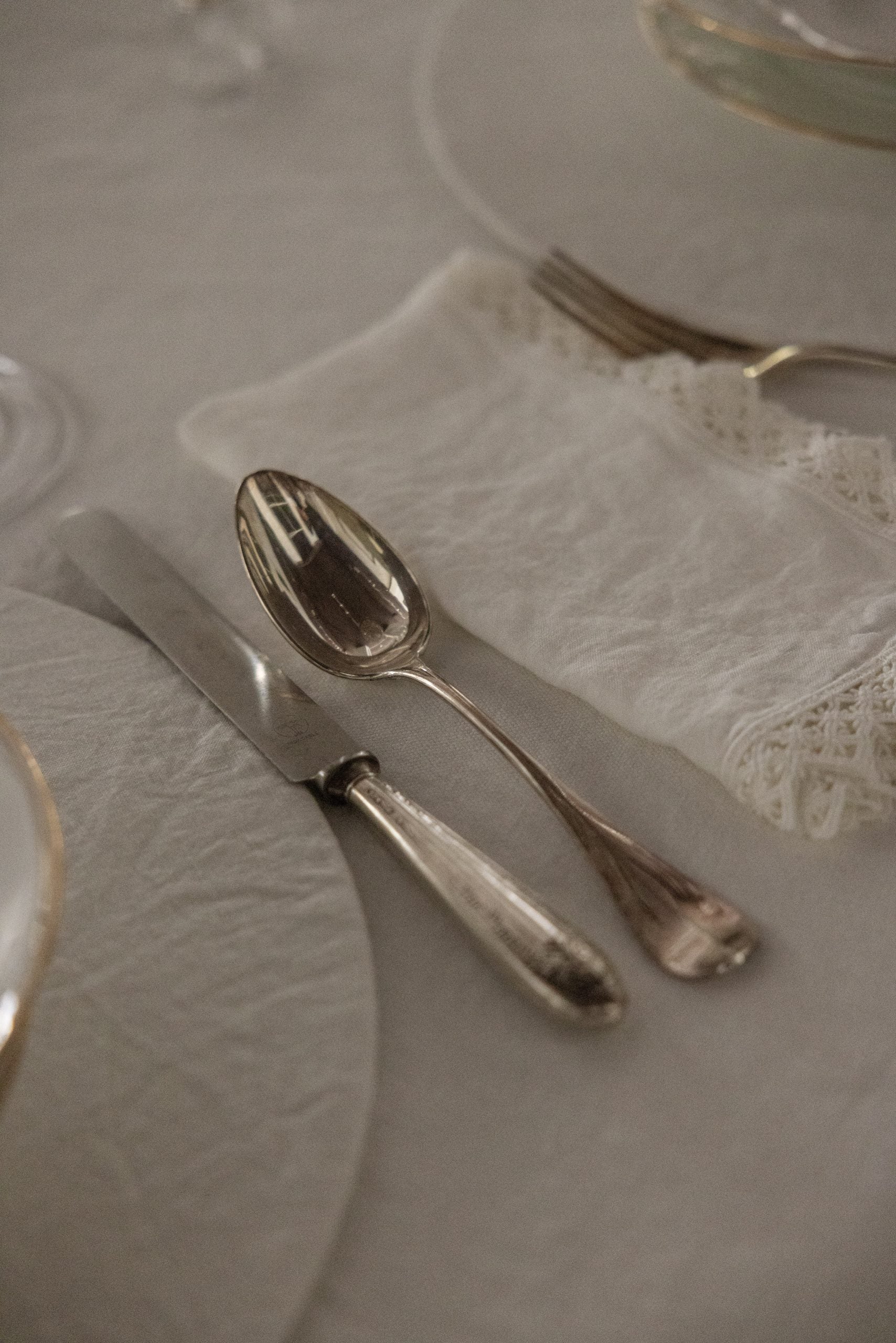 El metal plateado aporta resistencia y un brillo sutil que se mantiene con el uso y el paso del tiempo. Su diseño sobrio permite integrarlos fácilmente tanto en una mesa formal como en un entorno más contemporáneo.