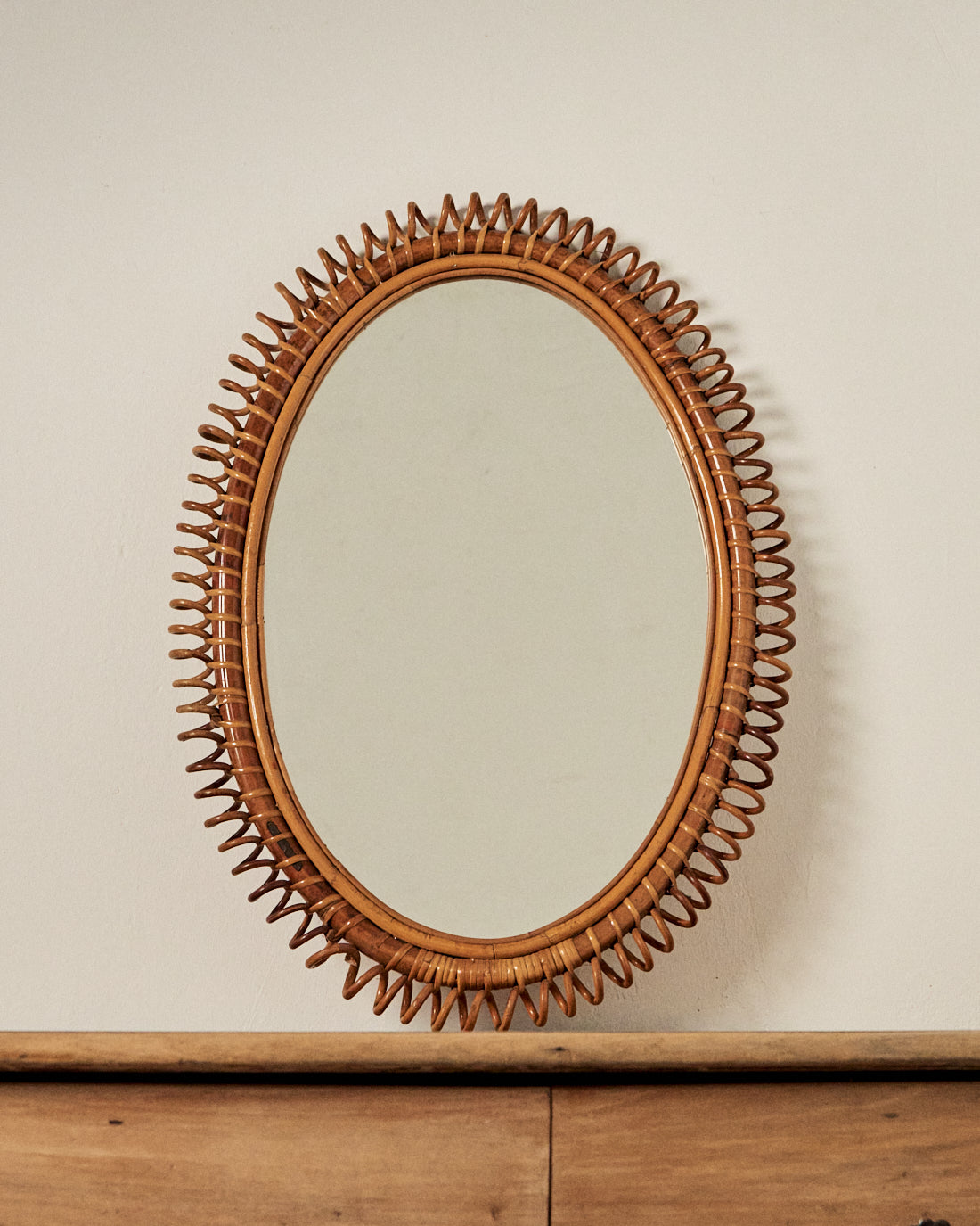 ESPEJO ITALIANO DE RATÁN AÑOS 70