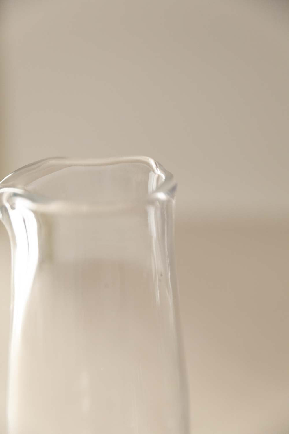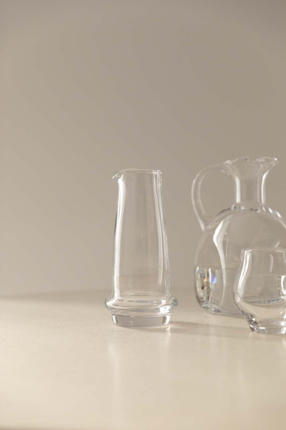 Jarra de cristal alargada sin asa, diseñada para combinar funcionalidad y elegancia. Cada pieza conserva un equilibrio entre forma, proporción y diseño.