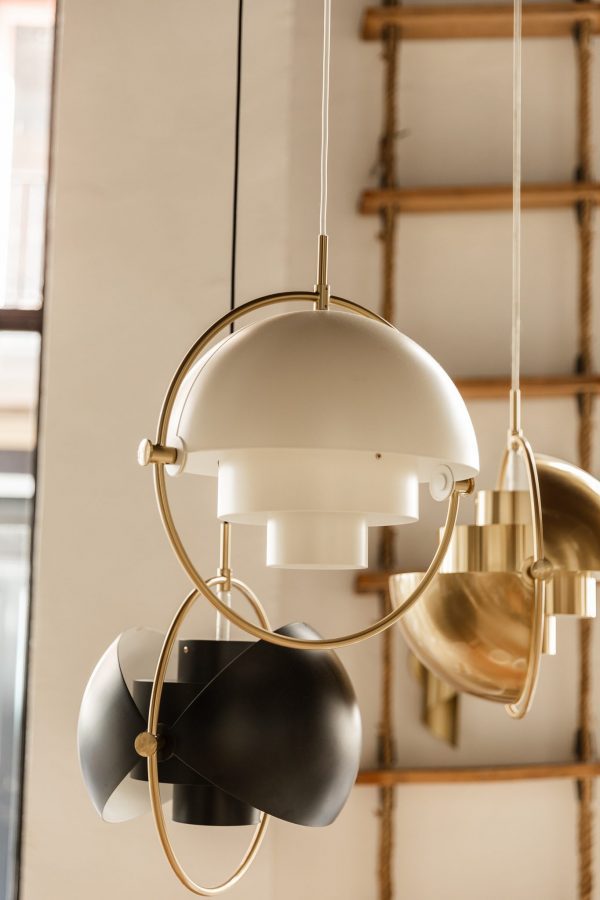 Lámpara de techo multiposición de diseño danés, caracterizada por su equilibrio entre funcionalidad y estética.