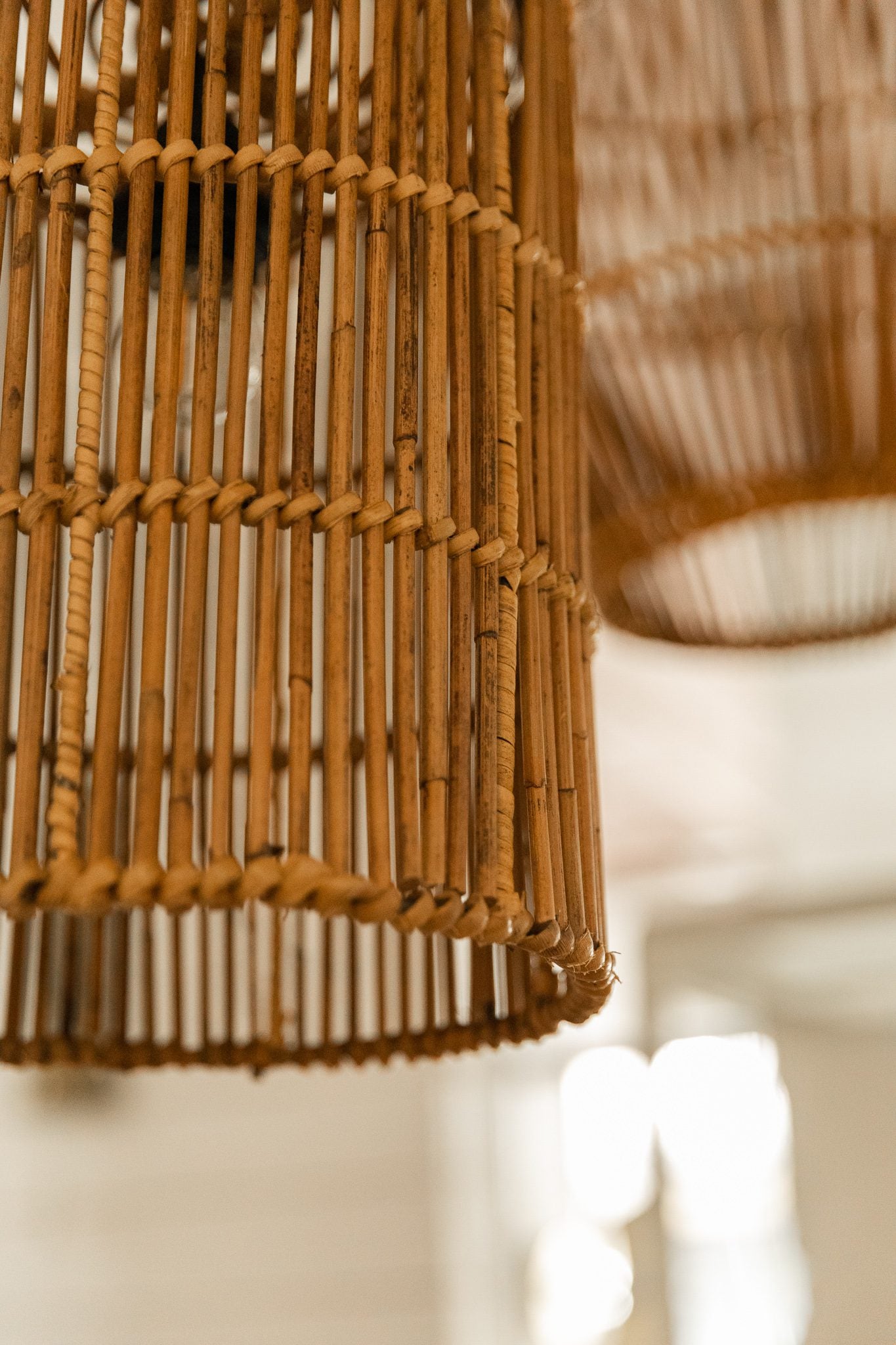 El ratán, material de origen vegetal, destaca por su resistencia, flexibilidad y belleza natural, cualidades que lo han convertido en un clásico del diseño artesanal. Cada lámpara se elabora a mano, conservando las pequeñas variaciones que hacen única a cada pieza.
