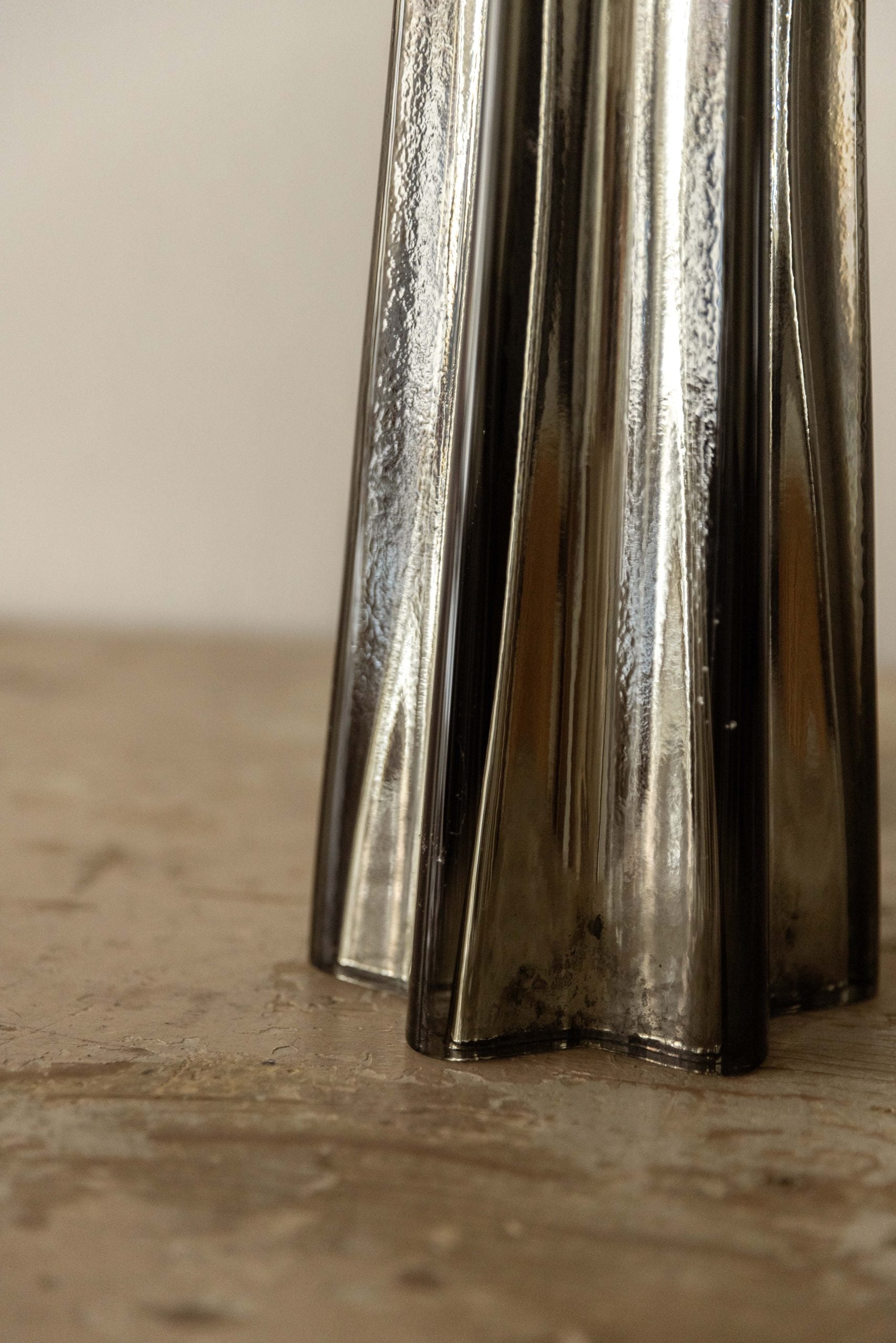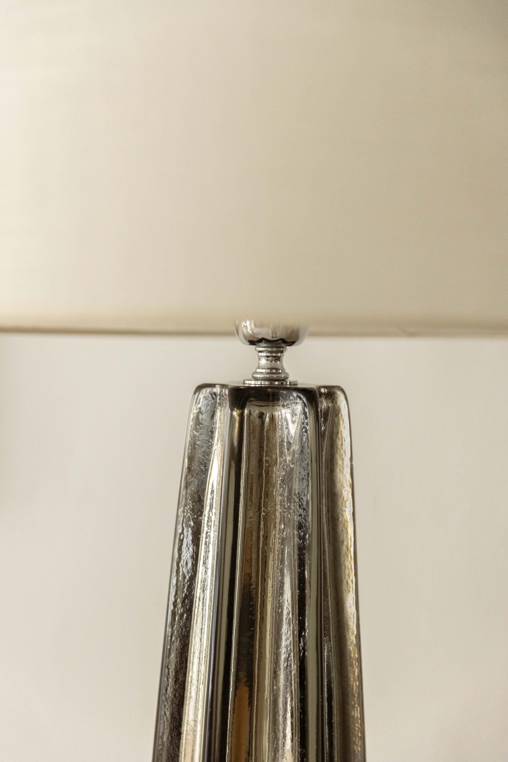 Pareja de lámparas de vidrio ahumado, con un diseño que combina transparencia y profundidad cromática.