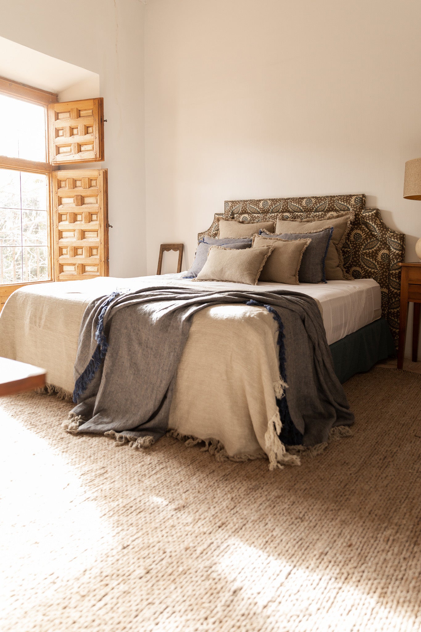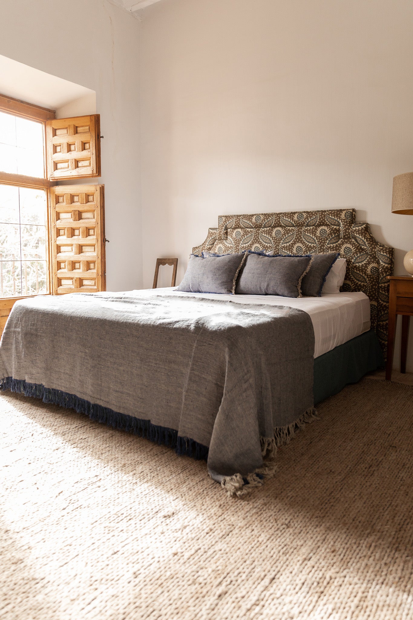 Plaid 100% lino en color azul, confeccionado artesanalmente en España.