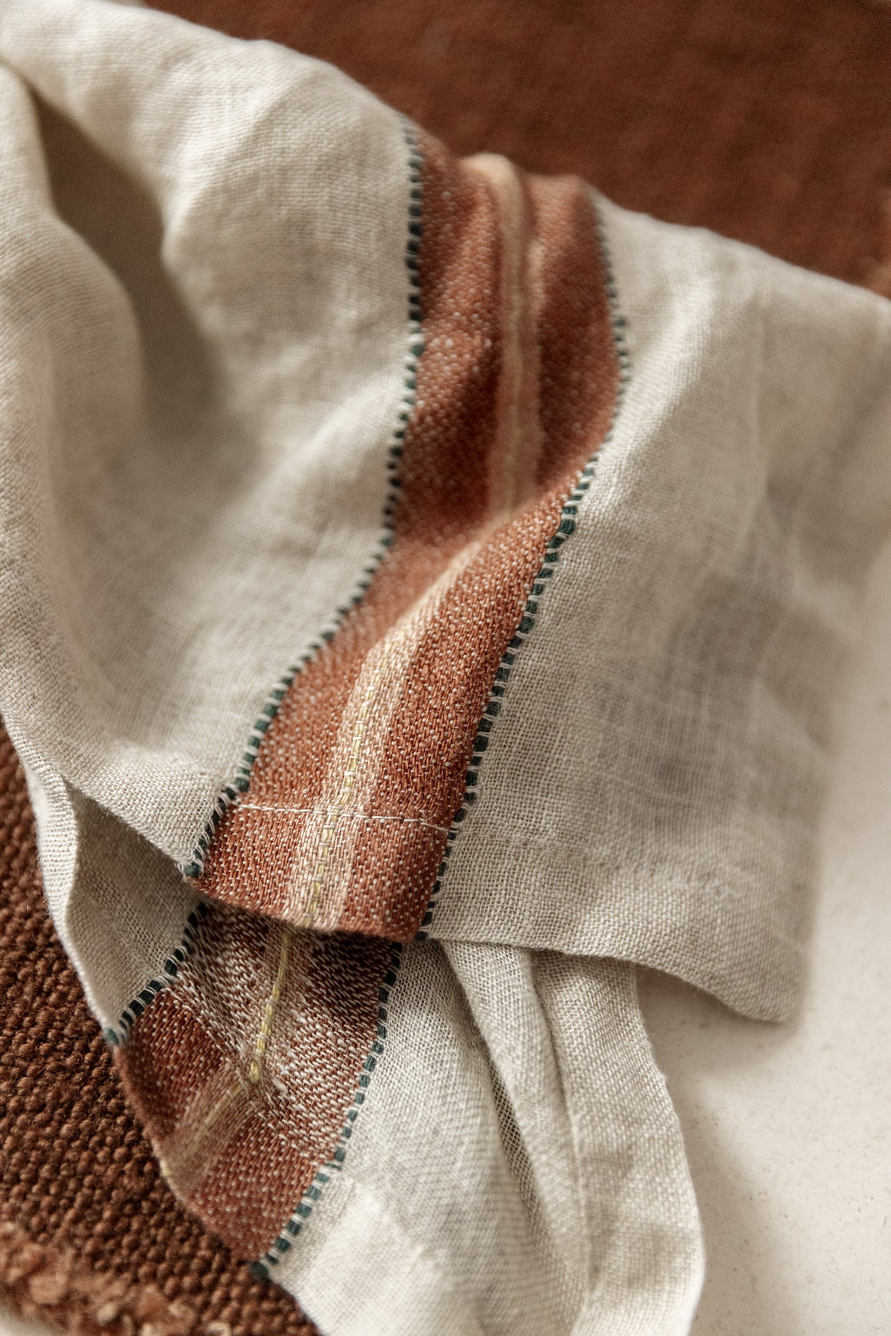 SERVILLETA DE LINO CON LÍNEA TEJA BORDADA