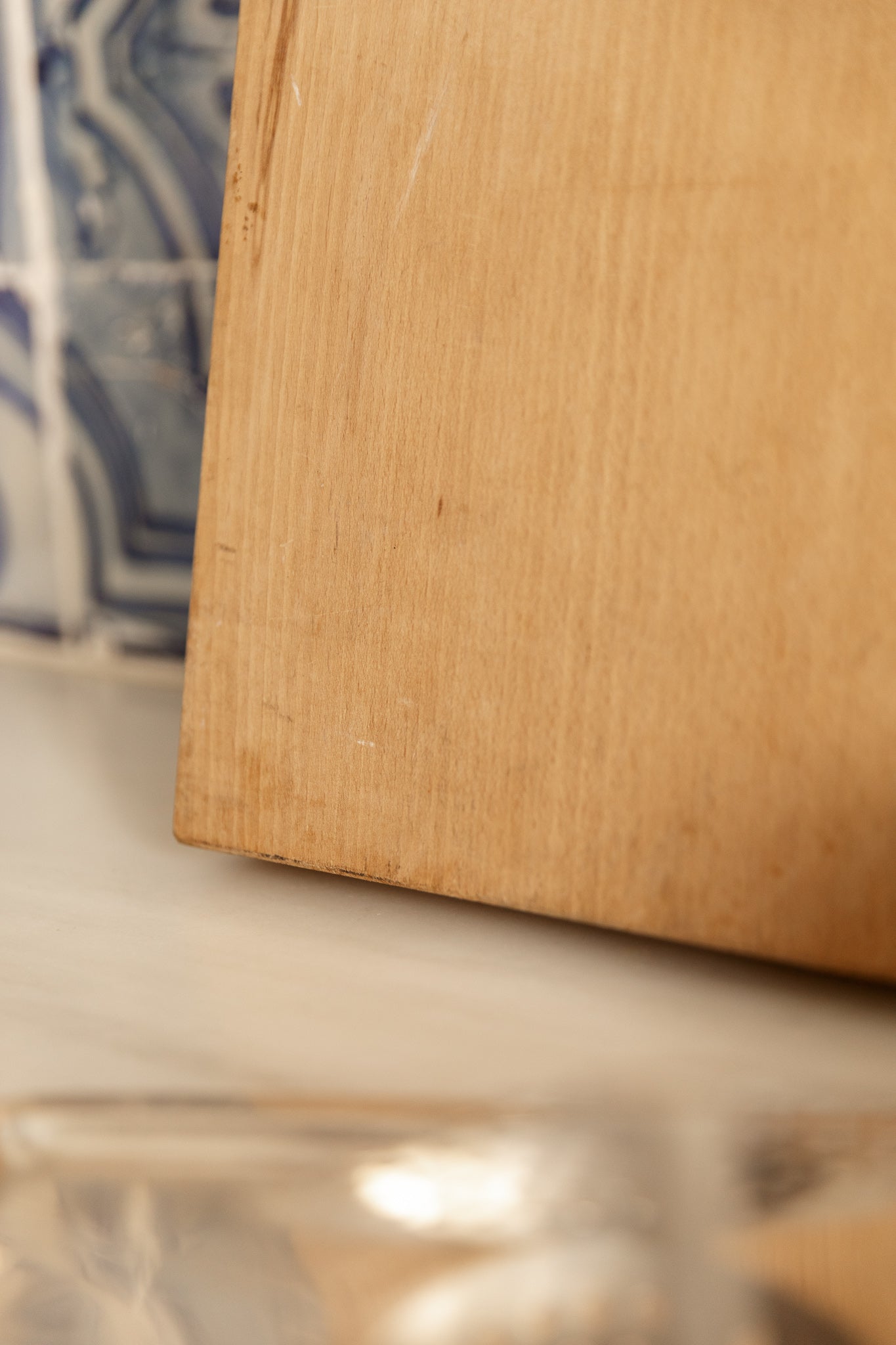 Estas tablas eran utilizadas tradicionalmente en cocinas rurales para la preparación de alimentos o como soporte de corte, aprovechando la resistencia y durabilidad de la madera maciza.