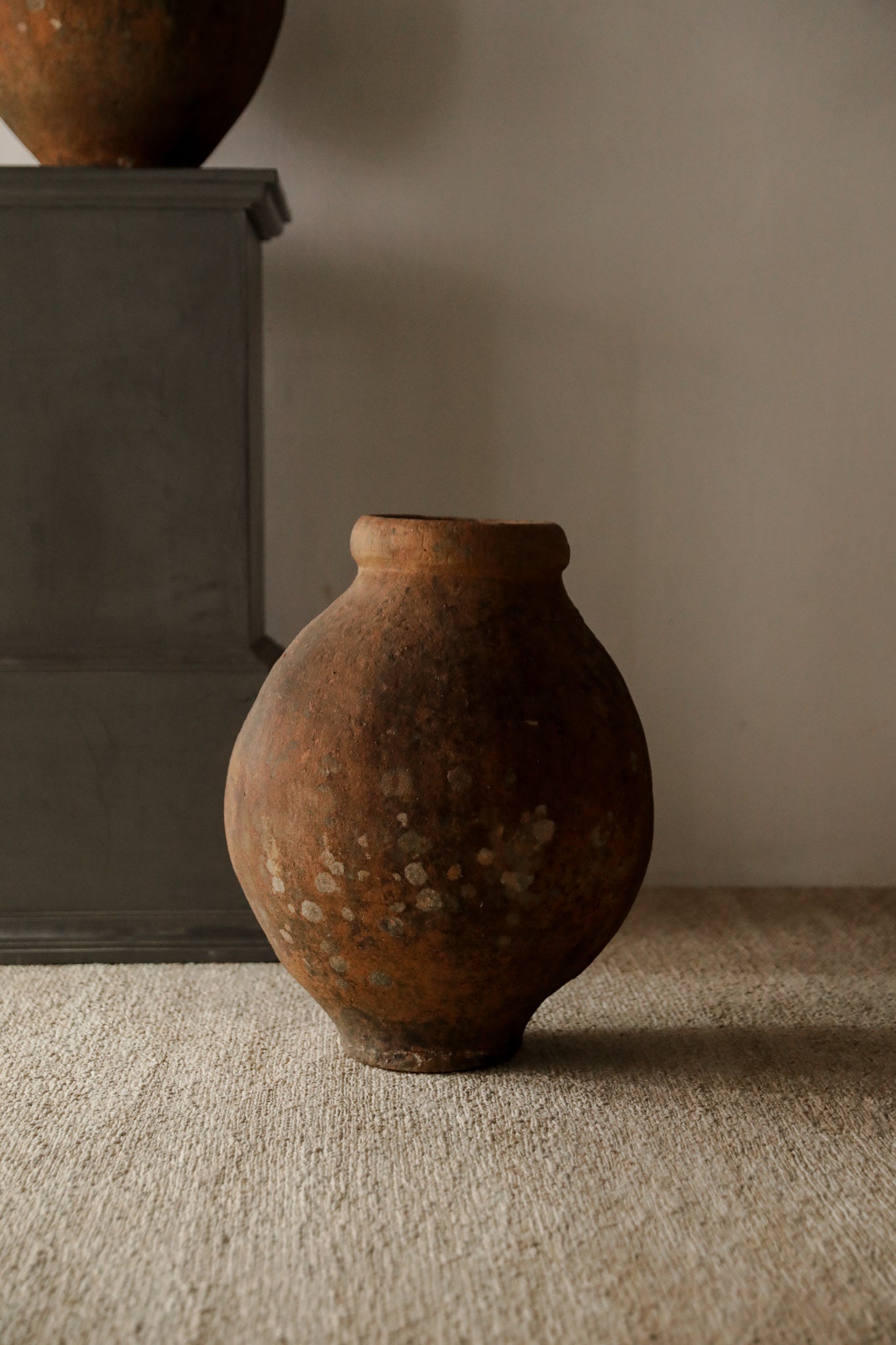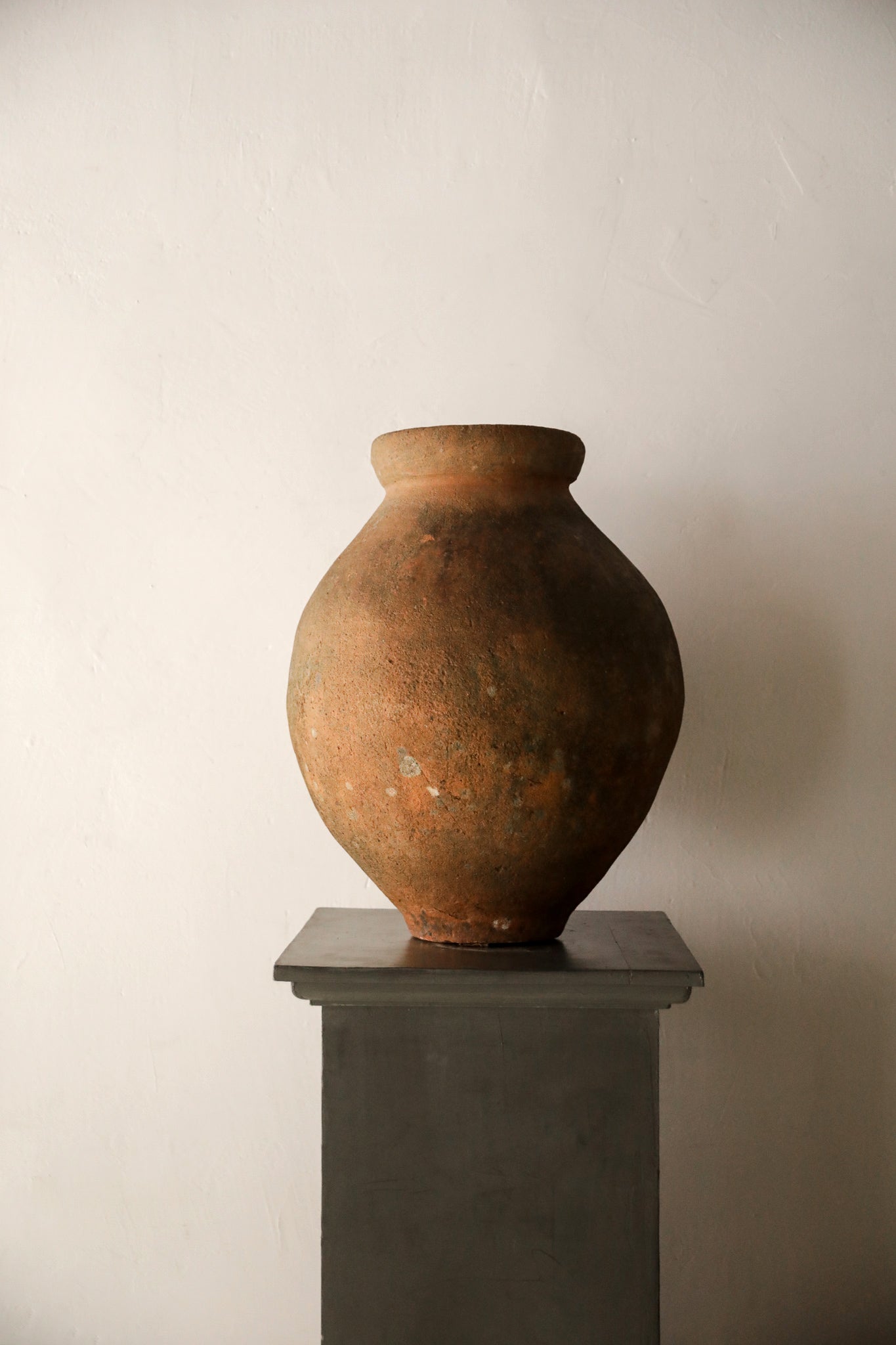 Tinaja de barro cocido del siglo XIX, elaborada con técnicas tradicionales.