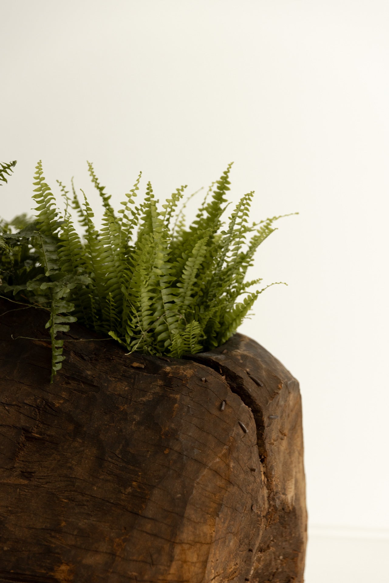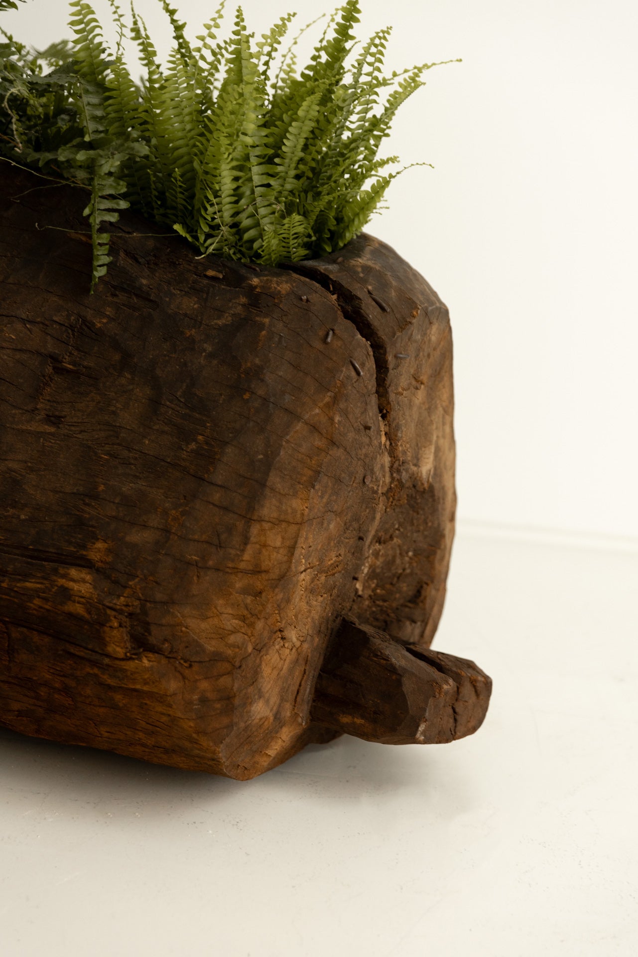 Tronco de madera maciza procedente de Etiopía del siglo XIX, que conserva la textura y signos de envejecimiento que evidencian su historia y autenticidad.