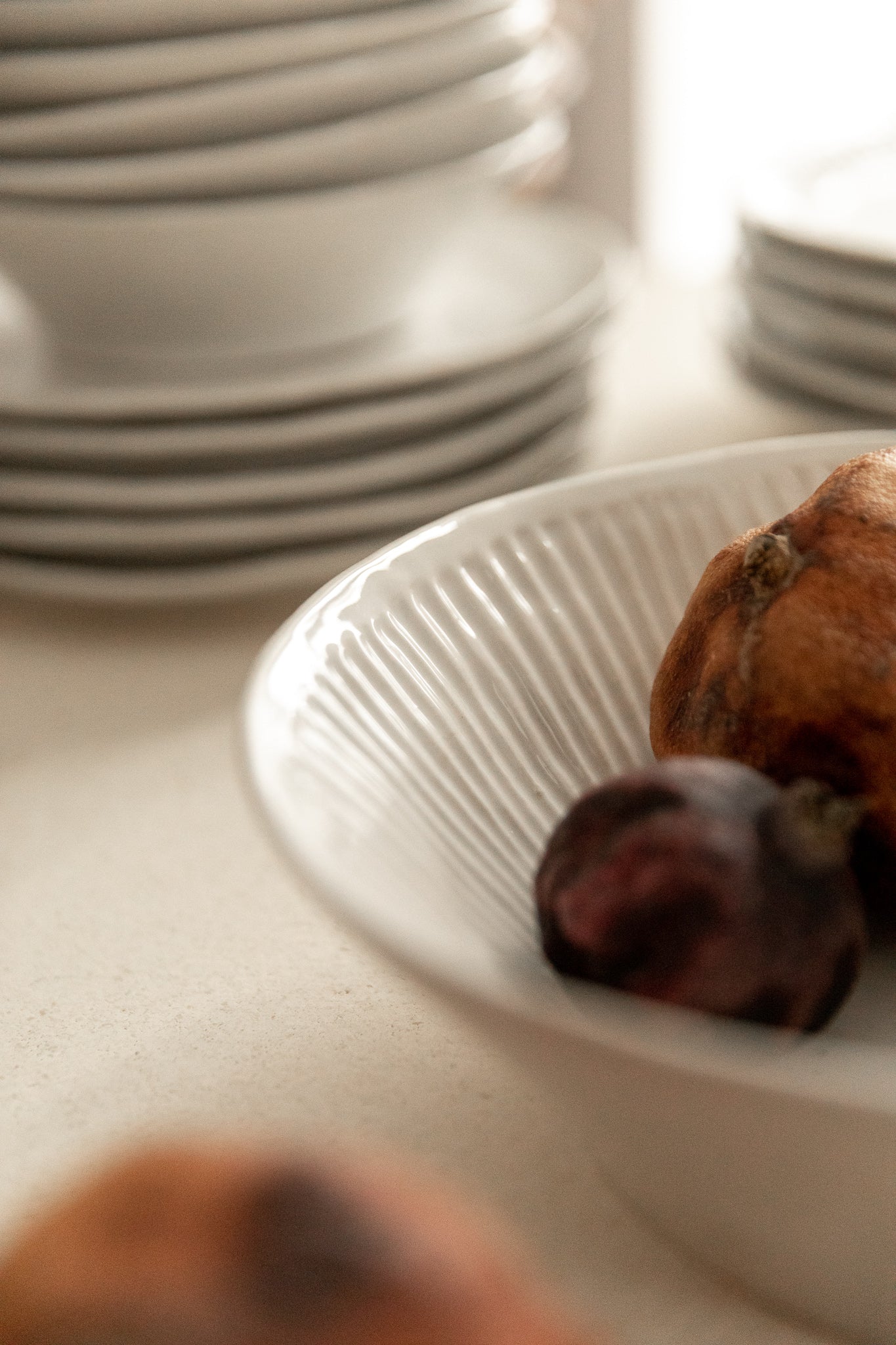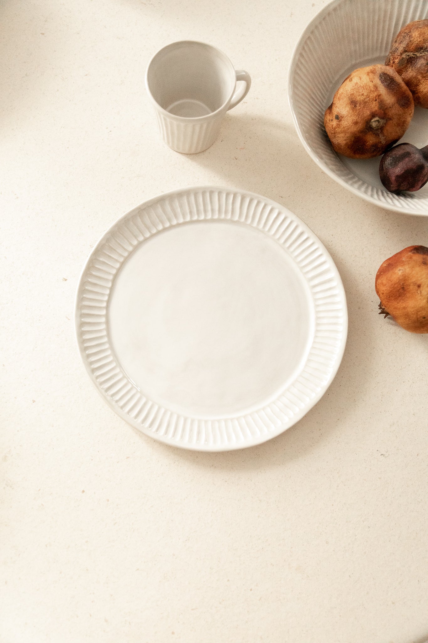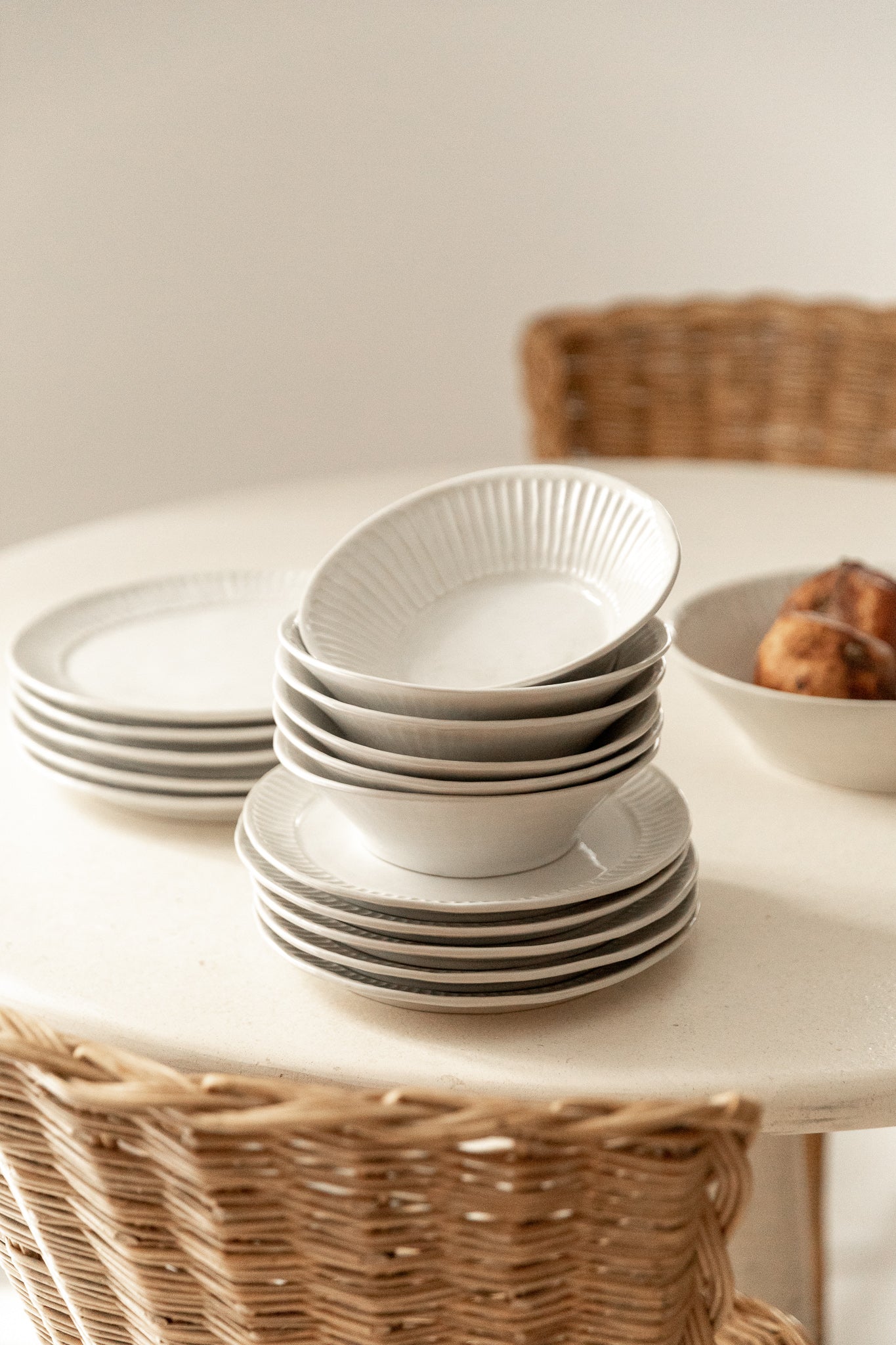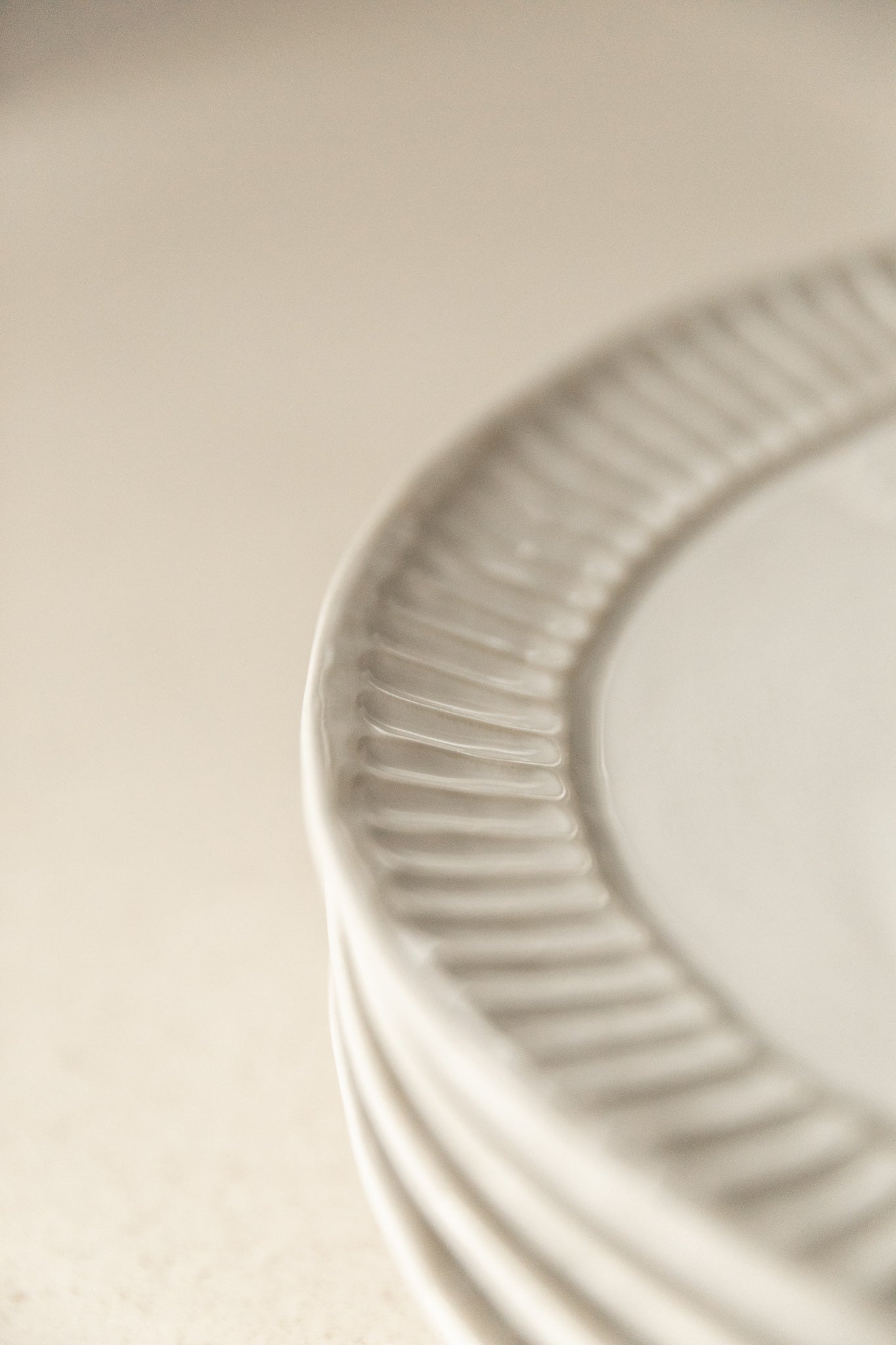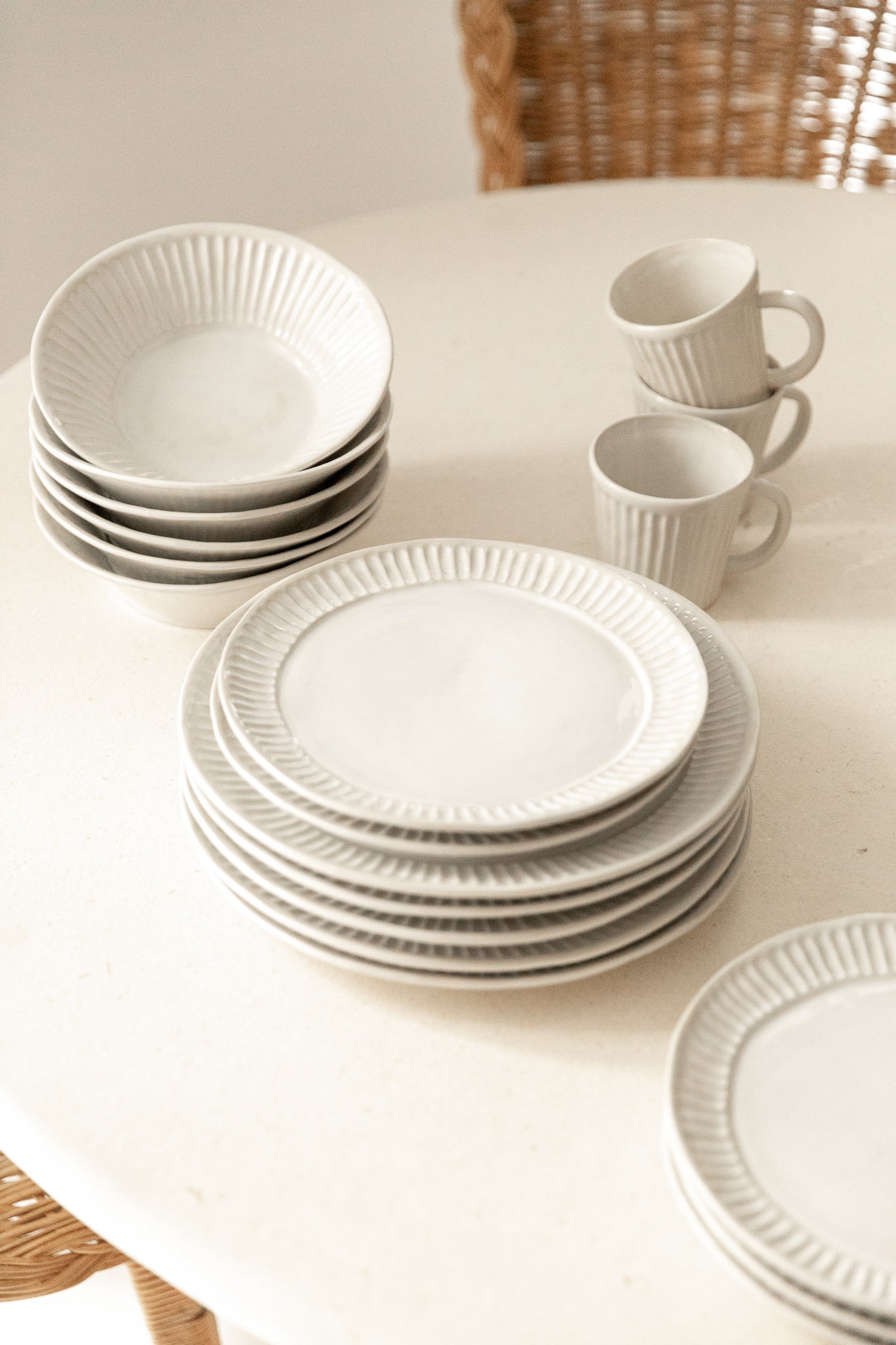 VAJILLA DE CERÁMICA BLANCA ESTRIADA